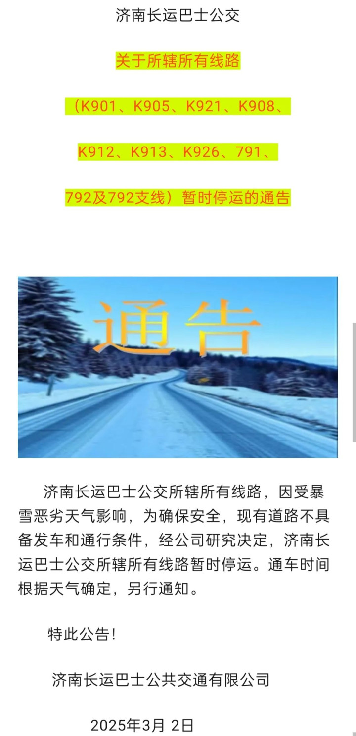 济南市部分公交线路暂停运行